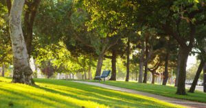 This is where the Rotary Band Shell is located, along with public restrooms in the back. Enjoy your lunch or dinner here at one of the numerous picnic tables, or just sit on the bench and watch the world pass by. Walkways dissect the park in a wagon-wheel formation.